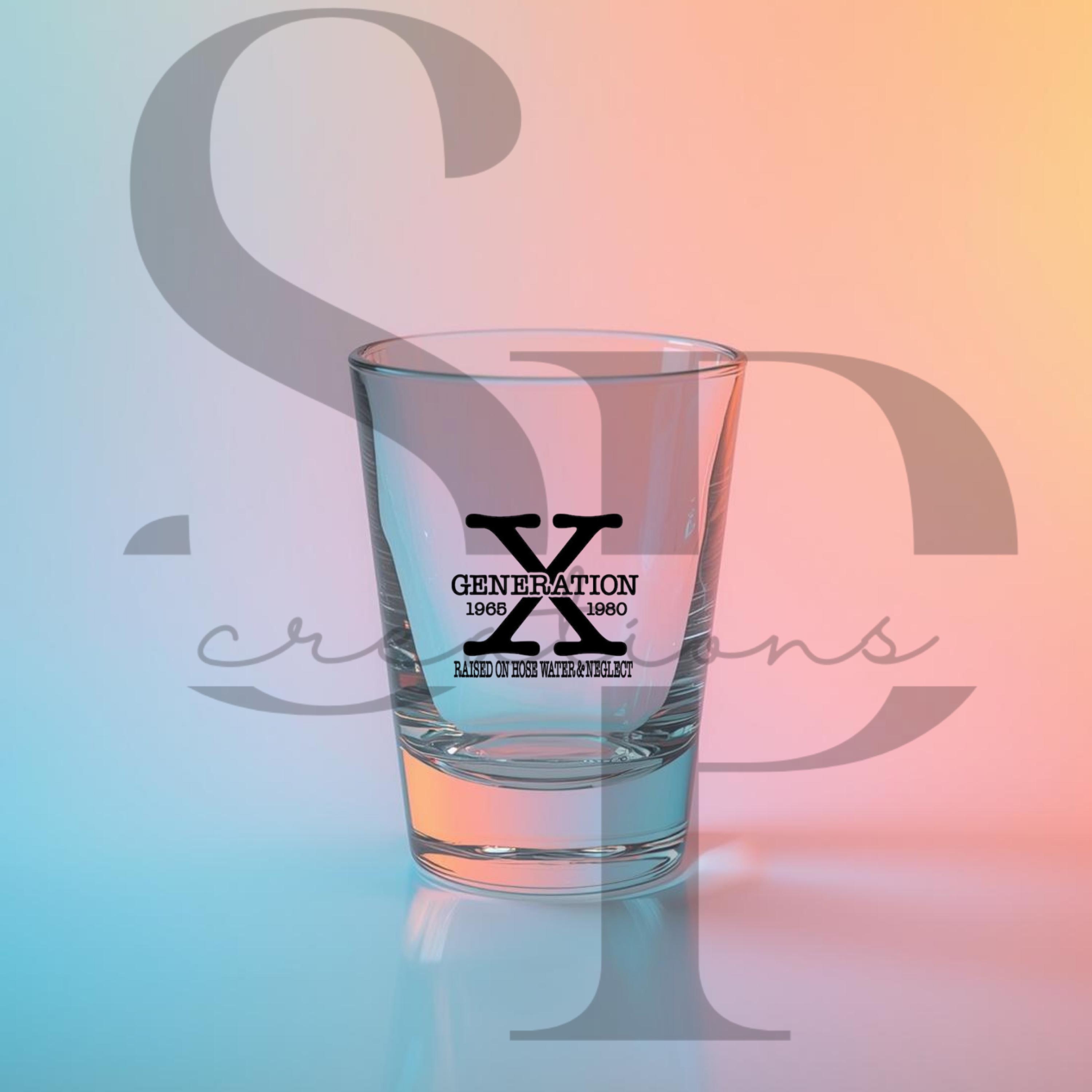Celebrate Generation X (1965–1980) with this fun and nostalgic shot glass featuring the phrase “Raised on hose water & neglect.” Perfect for Gen Xers who appreciate sarcastic humor and retro vibes, this shot glass makes a great gift or bar accessory.