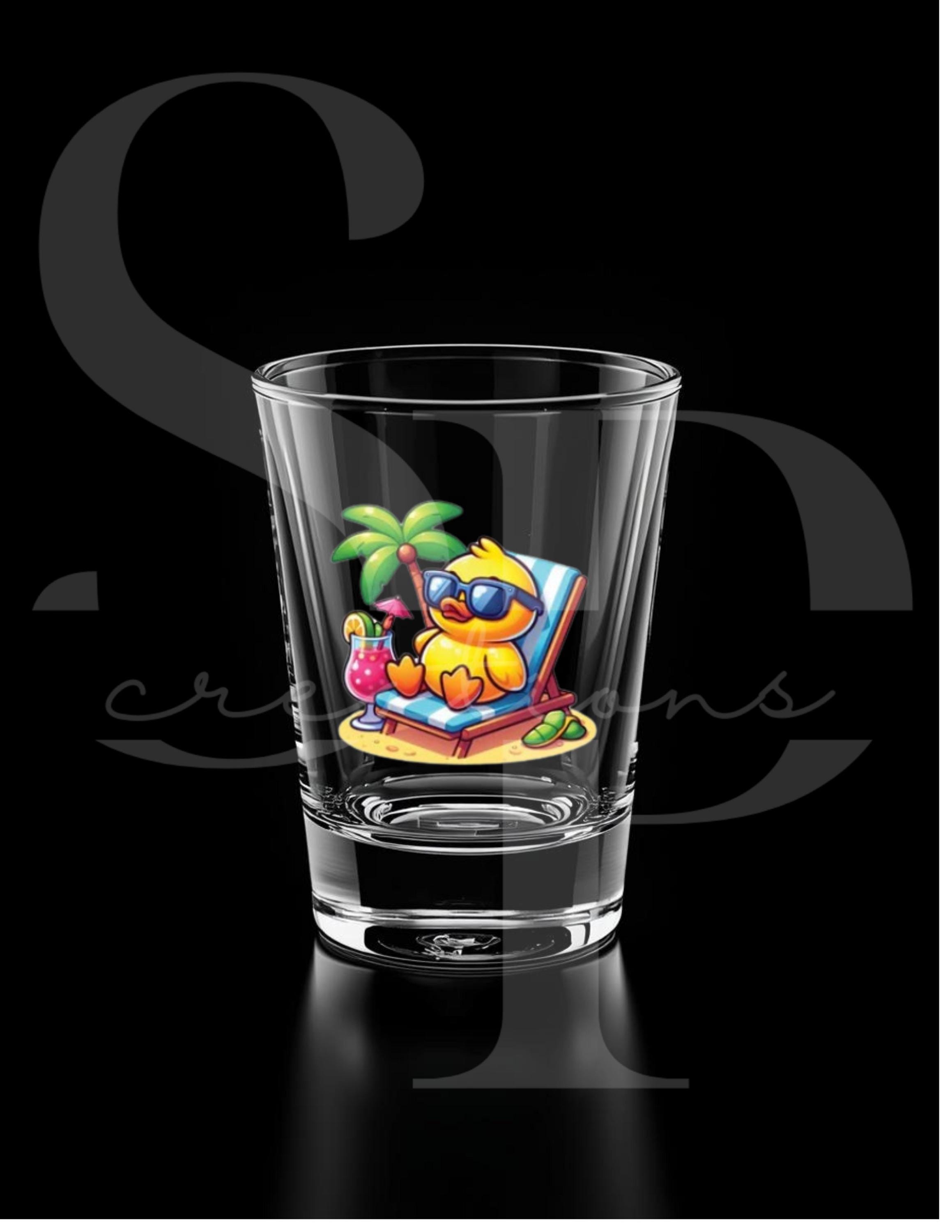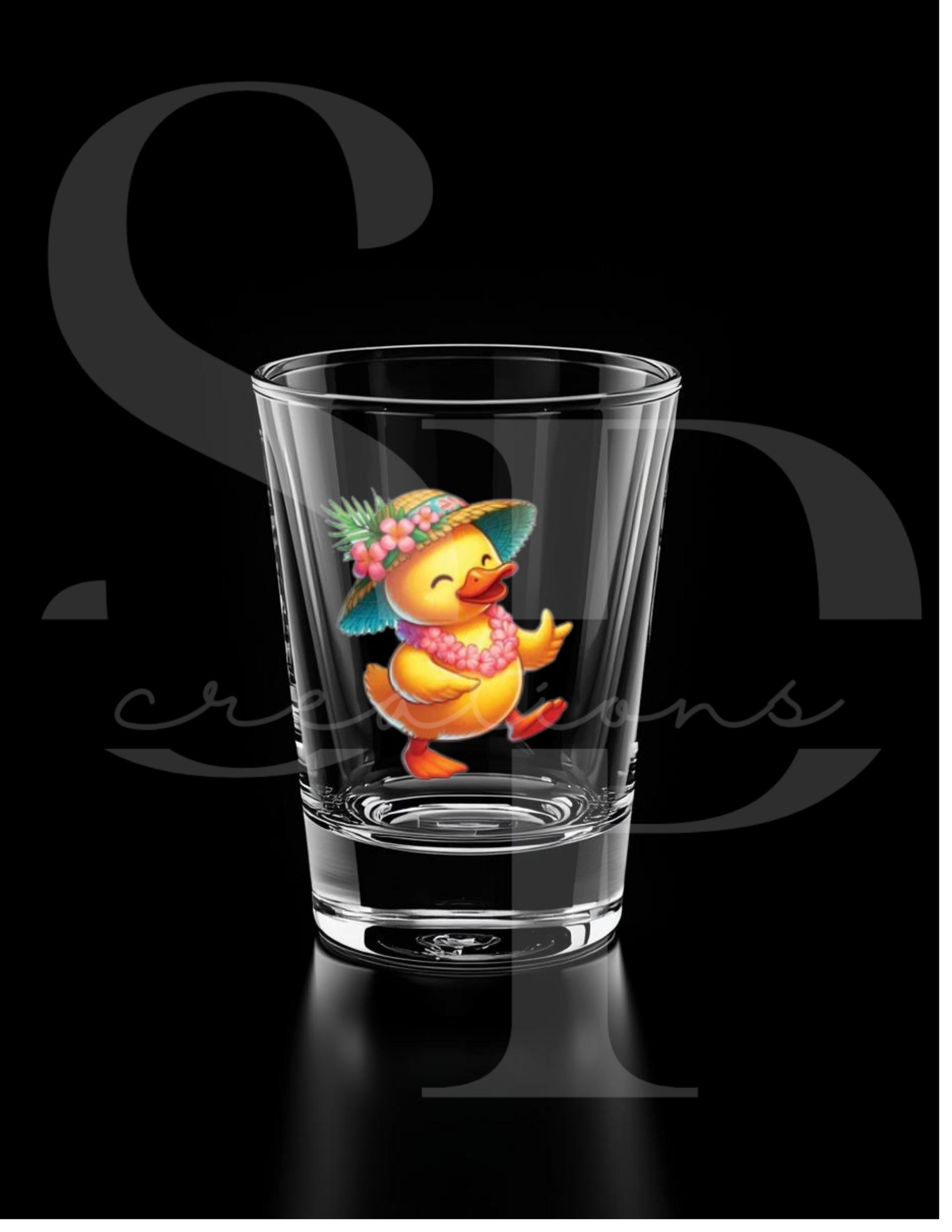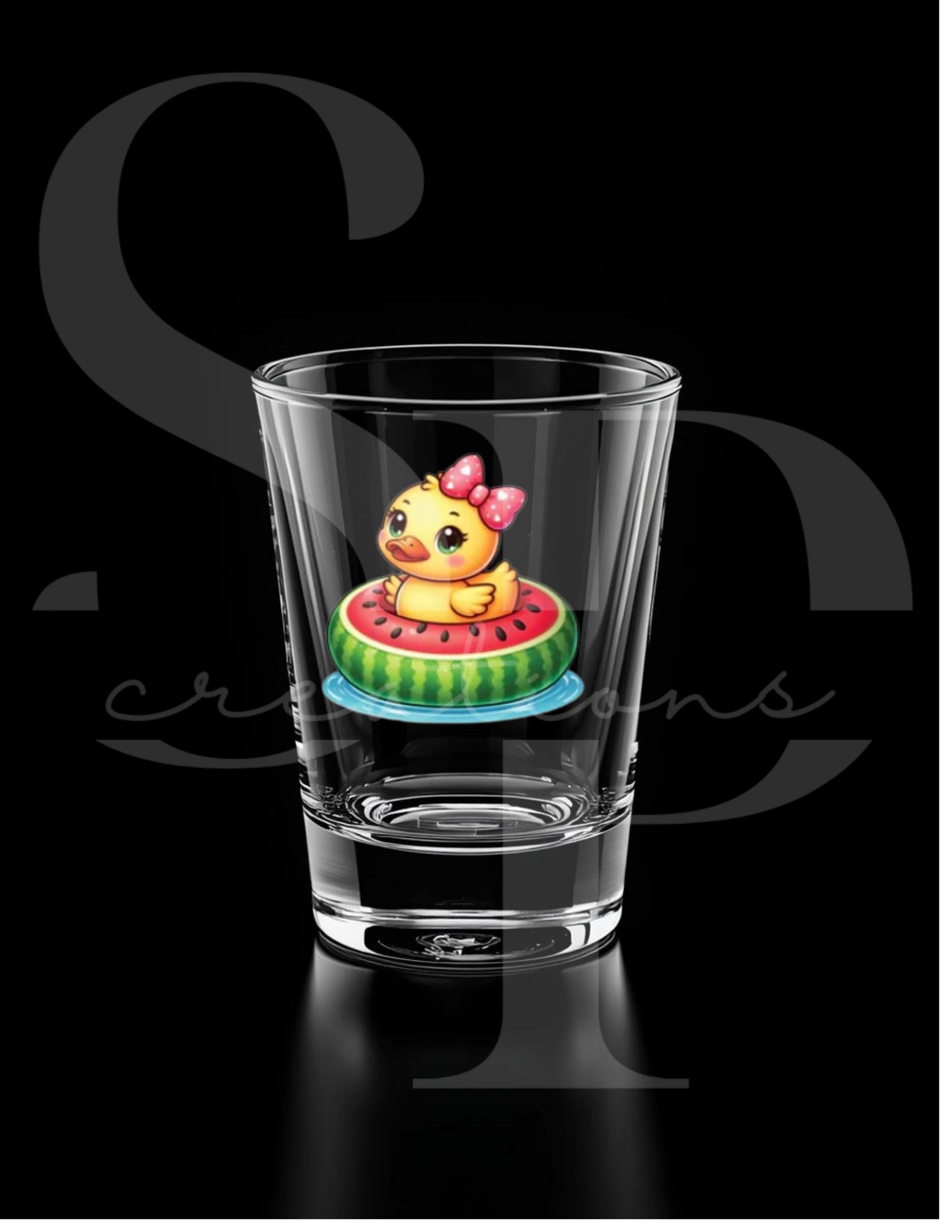Each clear glass features a bright, playful duck design with summer and poolside vibesâperfect for parties, gifts, or collectors.